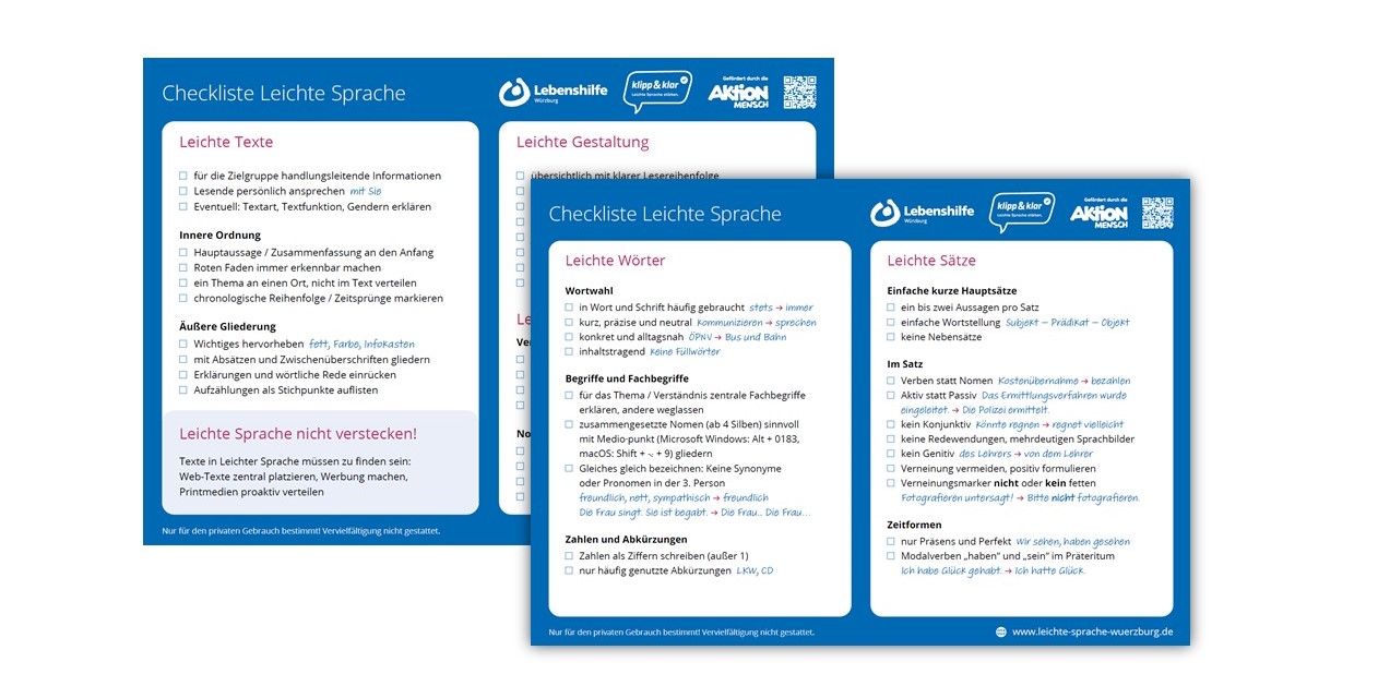 - Thematisch gebündelte Tipps und Materialsammlungen zu Leichter Sprache