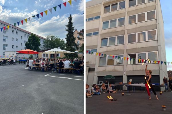 Zum Dank für ihr tatkräftiges Engagement richteten die Bereiche Assistenz beim Wohnen, Familienunterstützender Dienst und Urlaub & Freizeit deshalb auch dieses Jahr wieder ein großes Fest aus. Mehr als hundert haupt- und ehrenamtliche Mitarbeitende kamen am vergangenen Freitag im Hof der Wilhelm-Dahl-Straße zusammen, um gemeinsam zu feiern. Als besonderes Highlight gab es eine feuerpädagogische Show zum Mitmachen von Angelina Wandelbar.