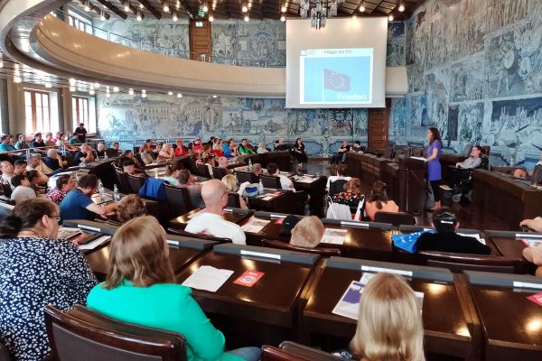 Bei der inklusiven Veranstaltung „Europawahl 2024: Spannend und verständlich erklärt“ am 15. Mai 2024 informierten sich etwa 100 Teilnehmende im Ratssaal über die anstehende Wahl. Dazu eingeladen hatten die Abteilung Inklusion und Europaangelegenheiten der Stadt Würzburg, die Robert-Kümmert-Akademie, ein Unternehmen des Tatenwerks, und das Büro für Leichte Sprache der Lebenshilfe Würzburg. Unterstützt wurde die Veranstaltung von Demokratie Leben.