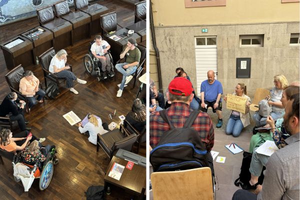 In den anschließenden Workshop-Gruppen tauschten sich die Teilnehmenden über politische Veränderungswünsche aus. Die Schüler*innen der Dr. Maria-Probst-Schule, einer Fachschule für Heilerziehungspflege, unterstützten die Teilnehmenden dabei.