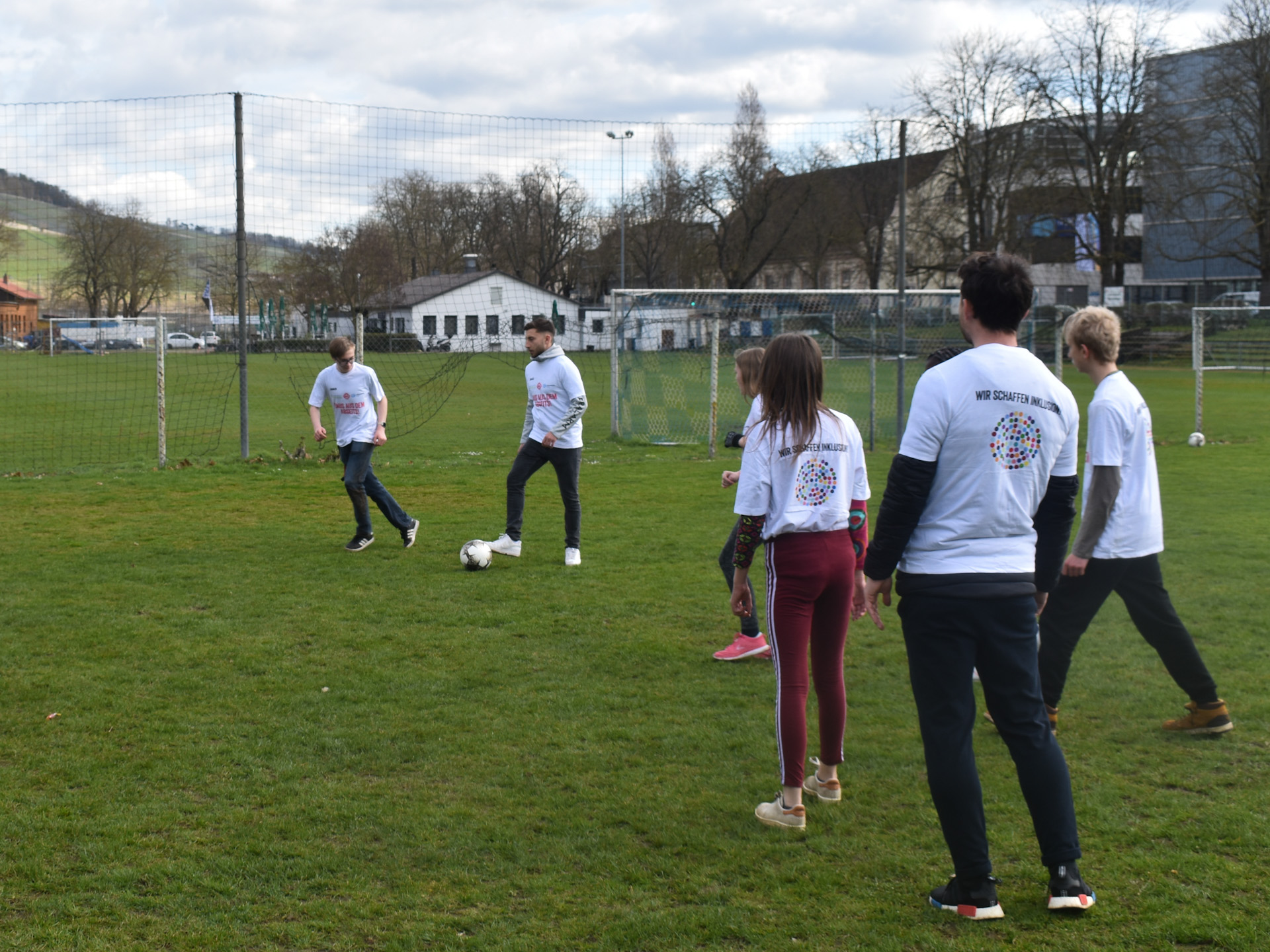 Am Mittwoch ging es dann für die Schüler*innen der Mittelschulstufe unserer Christophorus Schule mit Peter Kurzweg, Dominik Meisel und Benjika Caciel auf den Platz. Los ging es mit einem Warm-Up gefolgt von einer Passübung. Nach einem kurzen Torschuss-Training stand dann auch schon das Abschlussspiel an, bei dem Profis und Schüler*innen noch einmal alles gaben.